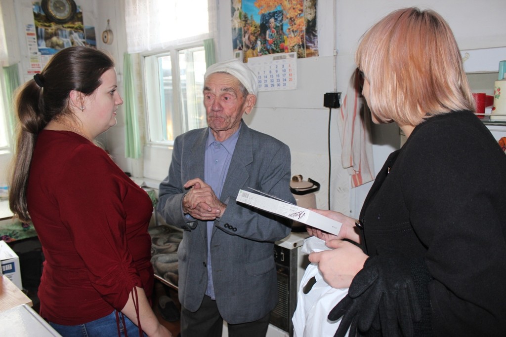 Сотрудники Комплексного центра навестили трех пожилых и одиноких пенсионеров, уч. ВОВ: Зинаиду Викторовну Невидимову - ранее учитель начальных классов, Татьяну Сидоровну Иголкину - вдову ветерана войны и Гельма Андрея Филипповича - ветеран ВОВ.