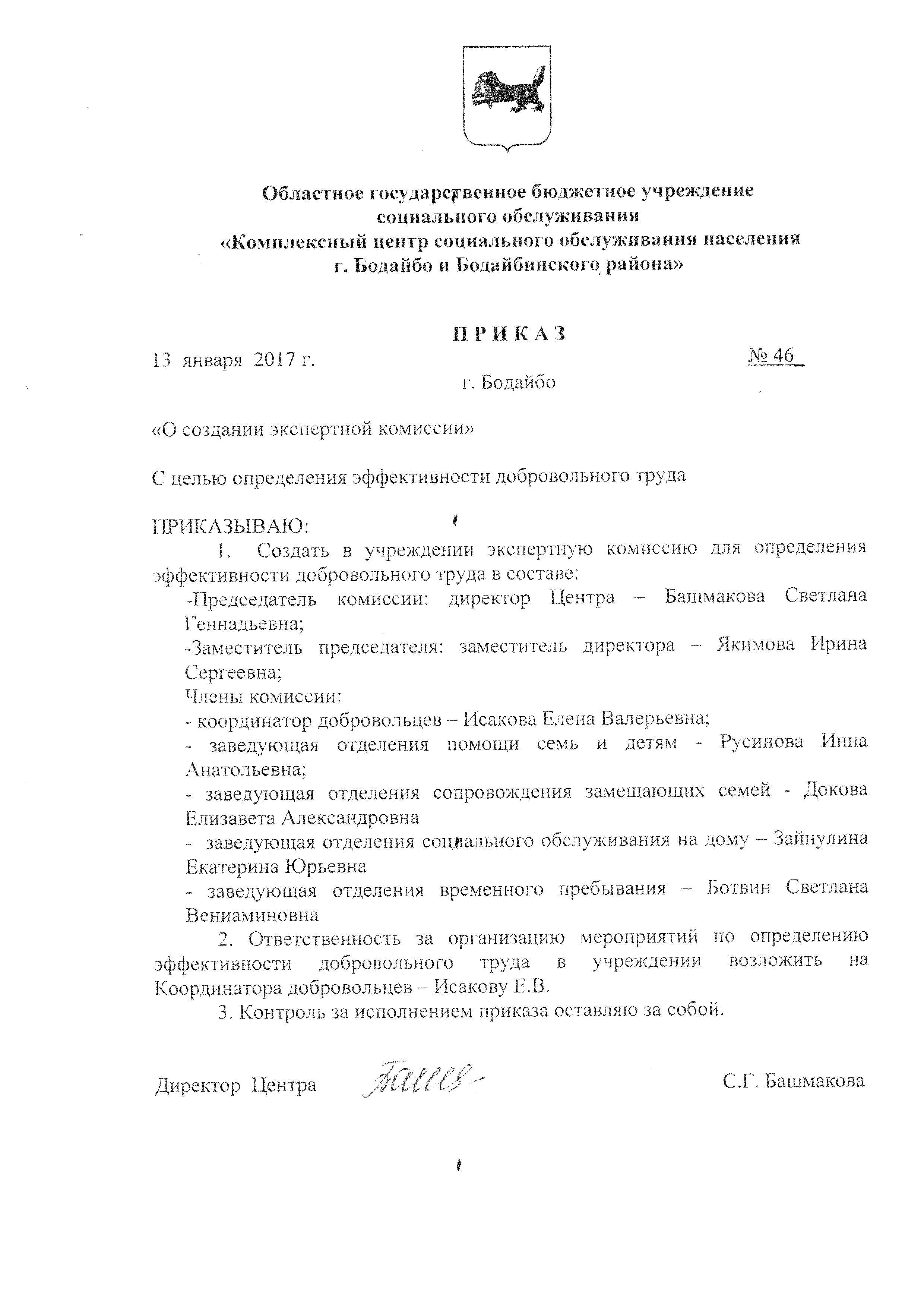 Приказ о создании экспертной комиссии